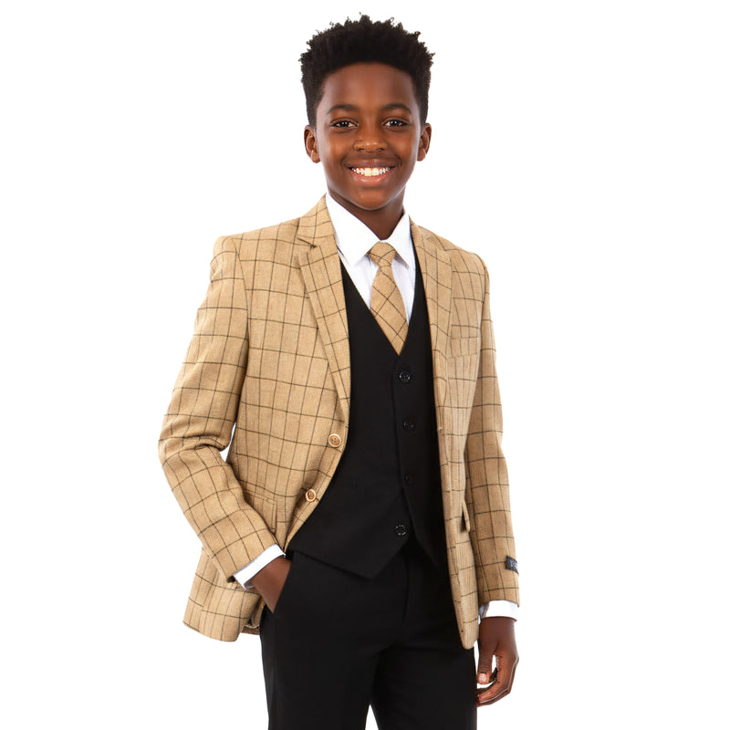 Tazzio Boys 5 Piece Windowpane Suit Set