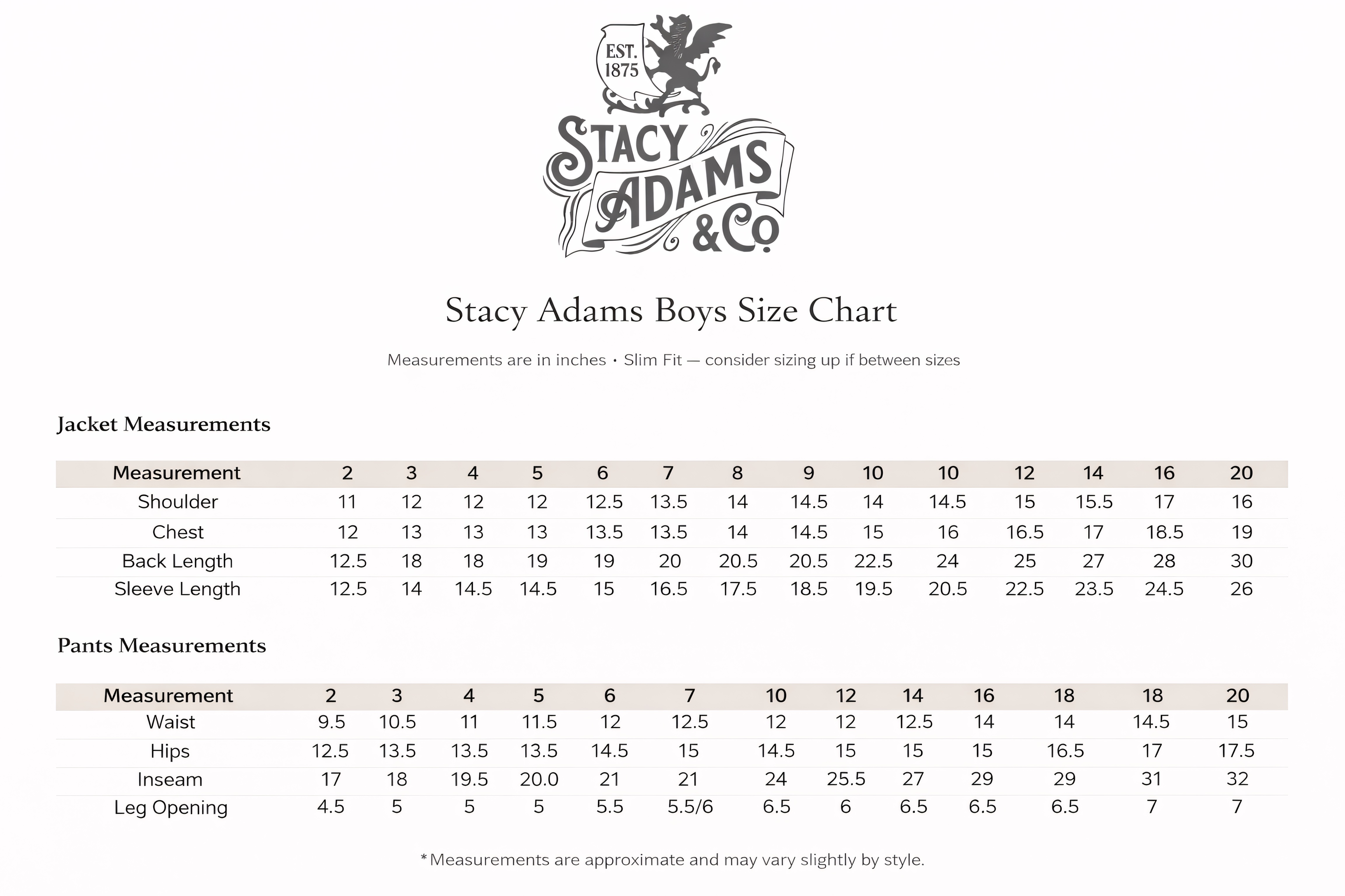 Size Guide: Stacy Adams — Boys-Suits