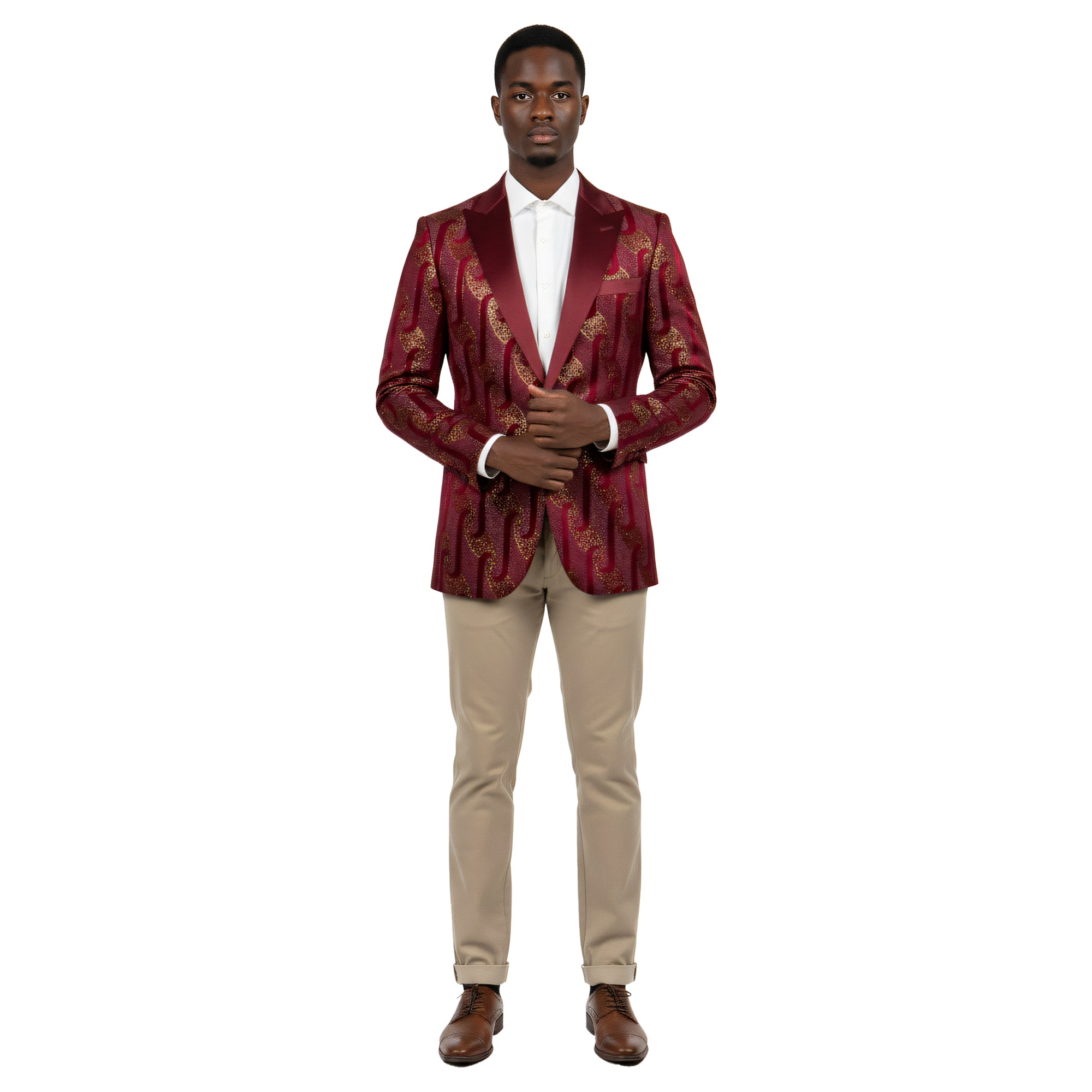 Empire™ Metallic Brocade Wave Modern-Fit Peak Lapel Blazer, Burgundy & Gold