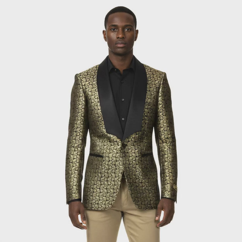 Empire™ Metallic Gold Paisley Shawl Lapel Hybrid Fit Blazer, Gold