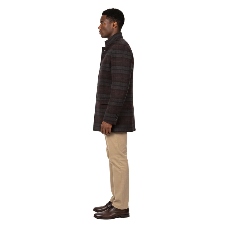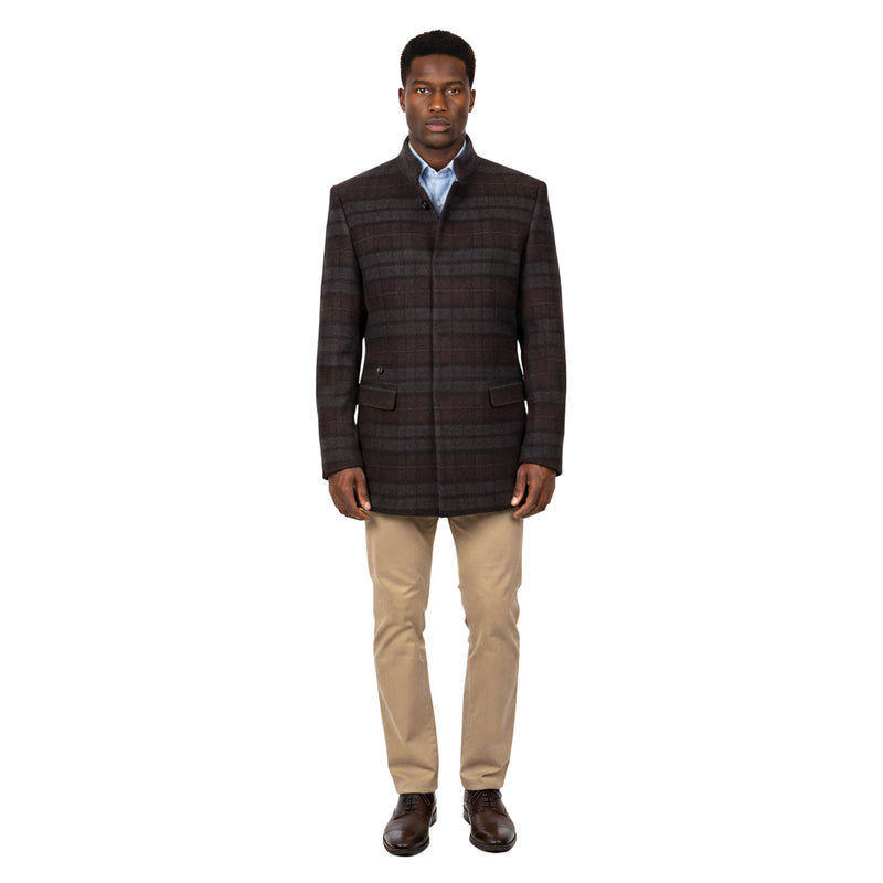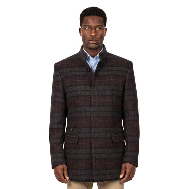 ZeGarie Men’s Wool Textured Plaid Topcoat, Burgundy