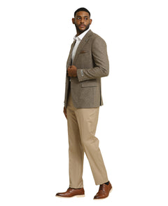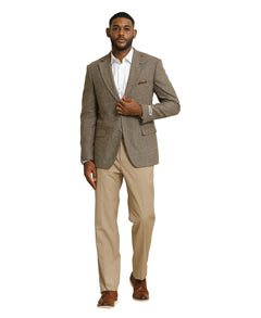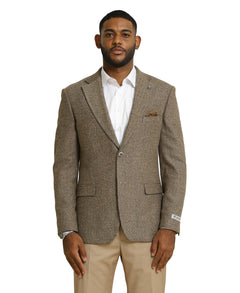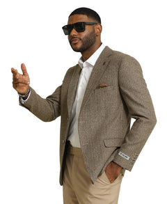 Step into refined elegance with the Stacy Adams Classic Tan Tweed Jacket. This warm, neutral shade brings a sophisticated yet approachable vibe, making it a versatile choice for various occasions. The light tan tweed fabric pairs beautifully with the sleek, tailored fit, offering a balanced blend of classic charm and modern appeal. The notch lapel and two-button closure complete the polished look, while the side vents provide a comfortable, structured fit. Finished with interior French facing and underarm sweat guards, this jacket combines style, comfort, and quality in one impeccable piece.