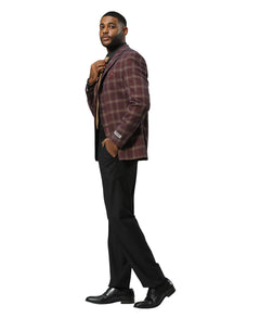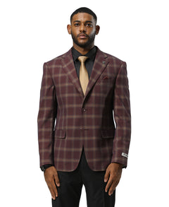 Stacy Adams Plaid Jacket Only, Burgundy