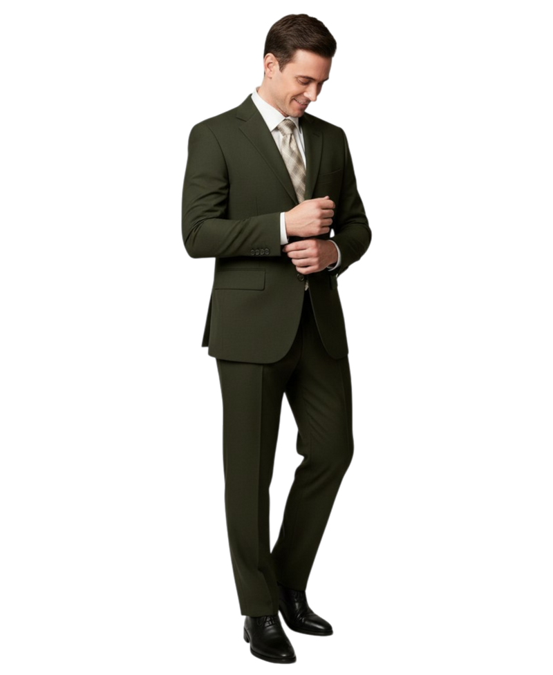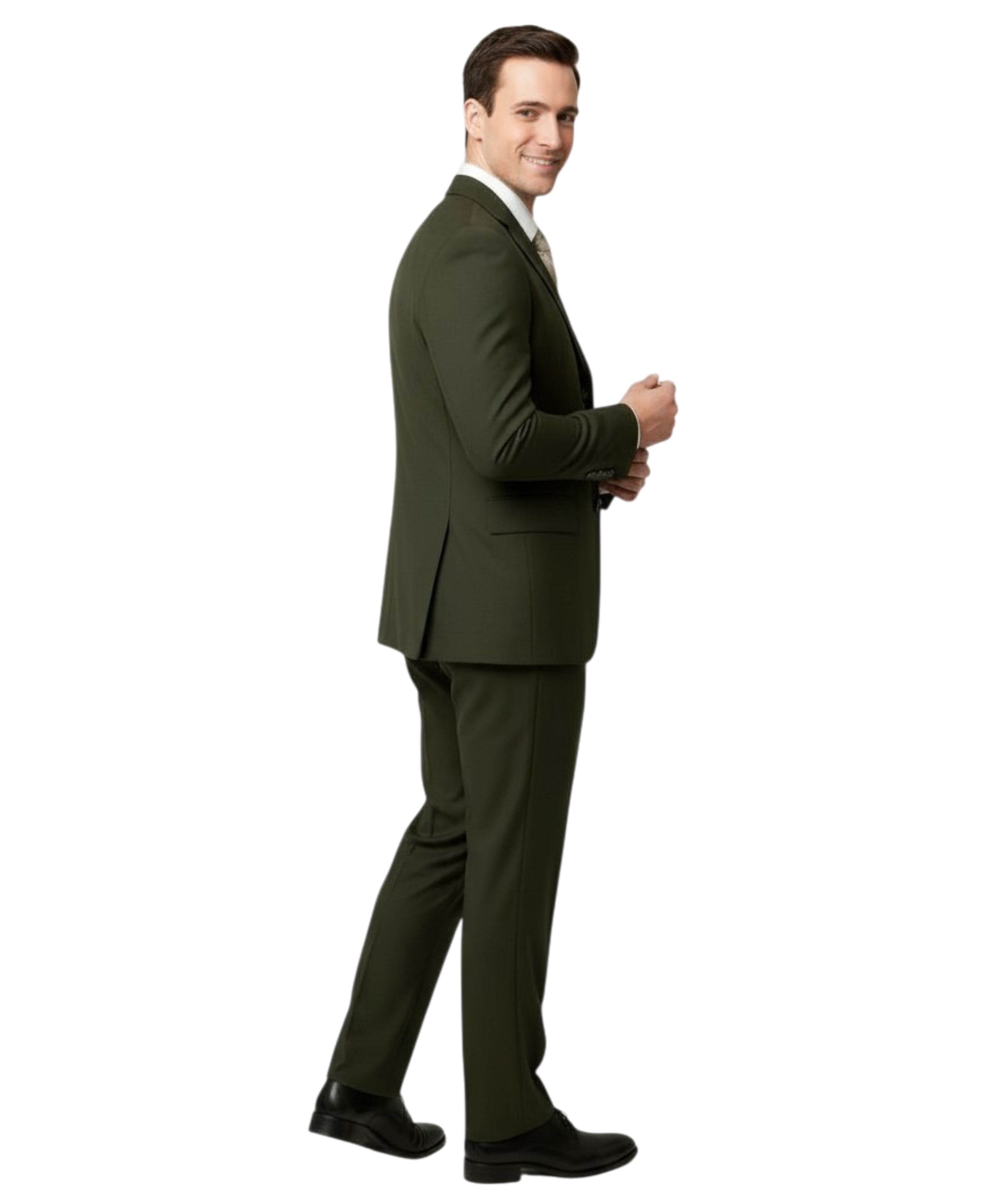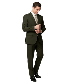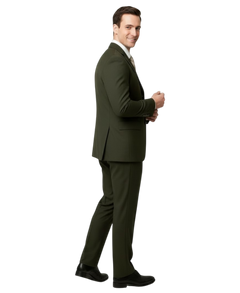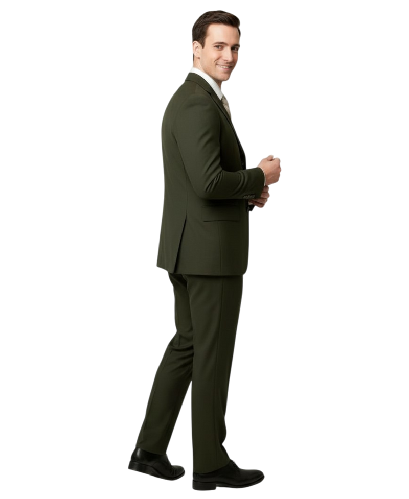 Elevate your formal wardrobe with the sophisticated color and timeless cut of this Dark Olive Business Suit. Offering a striking yet professional alternative to traditional navy or gray, this suit projects confidence and individuality for the modern professional.