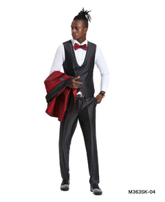 Tazzio Skinny Fit Paisley Shawl Collar Suit, Red / Black