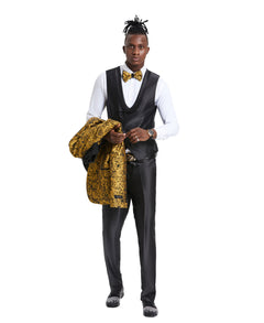 Tazzio Skinny Fit Paisley Shawl Collar Suit, Gold / Black