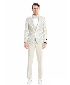 Tazio Tan Floral Patterned 3-Piece Skinny Suit Shawl Lapel