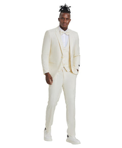 Tazzio Skinny Fit Polka Dot Suit Shawl U-Shaped Vest, Champagne