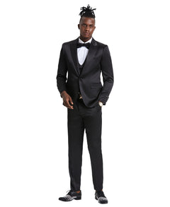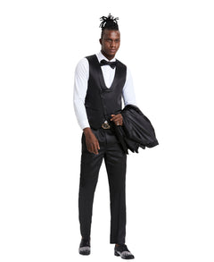 Tazzio Skinny Fit Suit U-Shape Vest, Shiny Black