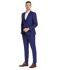 Tazzio Skinny Fit Window Plaid Suit, Double Breast U-Shape Vest, Admiral Blue