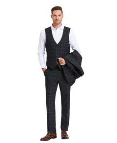 Designed for the ultra-modern gentleman, the Tazio Skinny Fit Suit in Dark Grey Window Plaid is crafted to make a bold statement. Featuring a sleek one-button closure and a sharp peak lapel, this suit combines sophistication and style. The windowpane pattern adds a timeless touch, while the matching vest and skinny fit pants complete the ensemble. Perfect for formal occasions, this suit ensures you look sharp and feel confident, taking your style to the next level.