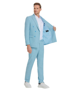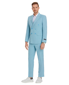 Introducing our must-have 2-piece peak lapel celeste-colored suit, designed to make a statement. With its unique and striking celeste color, this suit exudes modern sophistication. The sleek peak lapel adds a touch of elegance, while the skinny-fit pants create a streamlined silhouette that’s both comfortable and stylish. Whether you're attending a wedding, gala, or another formal occasion, this suit will leave a lasting impression. Step into effortless style with our 2-piece peak lapel celeste-colored suit today!