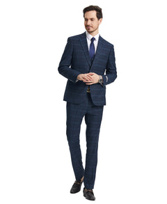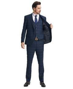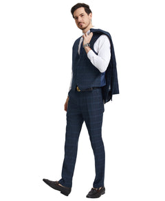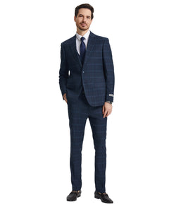 Stacy Adams Hybrid-Fit Vested Suit, Plaid Navy