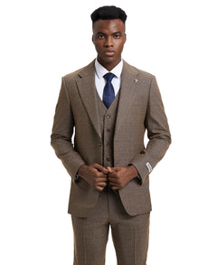 Stacy Adams Hybrid- Fit Vested Suit, Plaid Brown