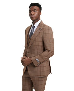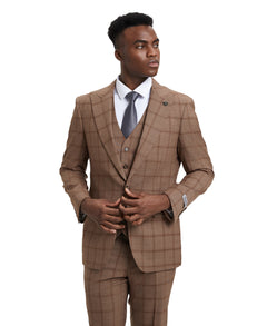 Stacy Adams Hybrid Fit Vested Suit, Windowpane brown