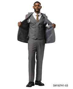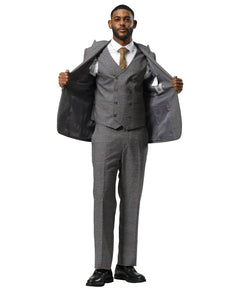 Step into timeless style with the Stacy Adams Windowpane Plaid Vested Suit Set. Featuring a sharp peak lapel, one-button closure, and a classic windowpane plaid pattern, this suit is designed to make a statement. The hybrid fit flatters all body types and provides comfort with underarm sweat guards. The double-breasted V-neck vest adds sophistication, while the expandable waistband on the flat-front trousers ensures all-day comfort without sacrificing a tailored look. Available in slim-fit sizes 36-44 and modern-fit sizes 46-62, this suit is perfect for any occasion where you want to look your best.