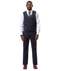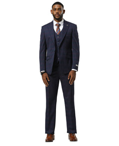 The Stacy Adams Glen Check Vested Suit Set combines timeless sophistication with modern versatility, making it ideal for formal occasions. The peak lapel jacket features a distinguished glen check pattern, a one-button front closure, side vents, and underarm sweat guards for comfort throughout the day. Its hybrid fit caters to both slim (sizes 36-44) and modern (sizes 46-62) profiles. The jacket also includes French-facing details, two besom front pockets with flaps, and three interior pockets. The matching V-neck vest enhances the ensemble with its single-breasted design, five-button closure, and two pockets. The flat-front trousers, with an expandable waistband, offer a custom fit and include front angled slip pockets and back besom pockets with button closures. This suit seamlessly blends classic charm with contemporary practicality, ensuring you look sharp and feel confident.
