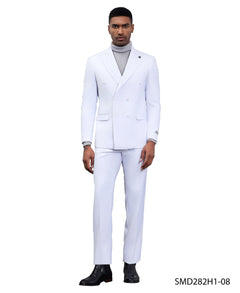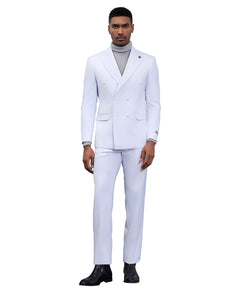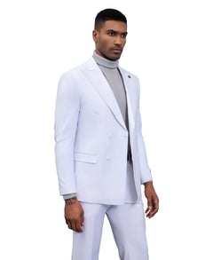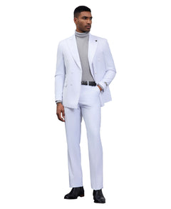 Elevate your formal attire with the Stacy Adams Double-Breasted 2-Piece Suit in White. This immaculate suit is the epitome of sophistication, featuring a double-breasted jacket with a wide peak lapel and two-button closure that adds a sharp, distinguished look. Designed to offer both style and comfort, the hybrid fit accommodates a slim silhouette in sizes 36-44 and a modern fit in sizes 46-62. Thoughtful design elements like side vents, underarm sweat guards, and French-facing interiors ensure a polished look with practical ease of movement. Whether attending a wedding, gala, or any upscale event, this white suit is sure to turn heads and make a statement.