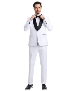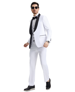 Introducing the Stacy Adams Hybrid-Fit Vested Tuxedo in Snow White, a pinnacle of timeless beauty and modern style. Crafted with care, this 3-piece suit will make a lasting impression at any formal occasion, be it a wedding, a black-tie gala, or any special event. It features a refined single-button fastening, a luxurious satin-black shawl collar, and pristine snow-white color for a timeless aesthetic. This timeless look is enhanced by its hybrid fit that combines modern tailoring and comfort, a flat front pant for a sleek look, and a versatile five-button vest. Plus, it includes valuable size options and unhemmed pants for customization. Make a statement with the Stacy Adams Snow White Tuxedo and enjoy Stacy Adams' renowned quality and style. Shop now to sparkle at your next event!
