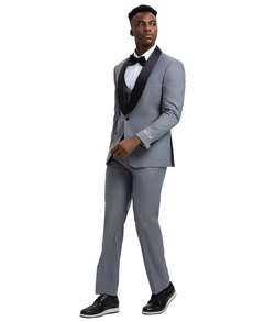 Experience the glamour and elegance of the Stacy Adams Hybrid-Fit Vested Tuxedo, Grey. Carefully crafted for a sophisticated appeal, this 3-piece suit will make a lasting impression at any special event. It features a single-button fastening, a luxuriant satin-black shawl collar, and vivid Grey hue for a timeless aura. Enhanced by hybrid fit combining modern tailoring and comfort, a flat front pant for a sleek look, plus a versatile five-button vest, the look is complemented by size options and unhemmed pants for personalization. Make a grand entrance with the Stacy Adams Grey Tuxedo & embrace the prestigious quality and style of Stacy Adams. Shop now to shine!