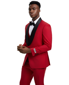 Experience the glamour and elegance of the Stacy Adams Hybrid-Fit Vested Tuxedo, Red. Carefully crafted for a sophisticated appeal, this 3-piece suit will make a lasting impression at any special event. It features a single-button fastening, a luxuriant satin-black shawl collar, and vivid red hue for a timeless aura. Enhanced by hybrid fit combining modern tailoring and comfort, a flat front pant for a sleek look, plus a versatile five-button vest, the look is complemented by size options and unhemmed pants for personalization. Make a grand entrance with the Stacy Adams Red Tuxedo & embrace the prestigious quality and style of Stacy Adams. Shop now to shine!
