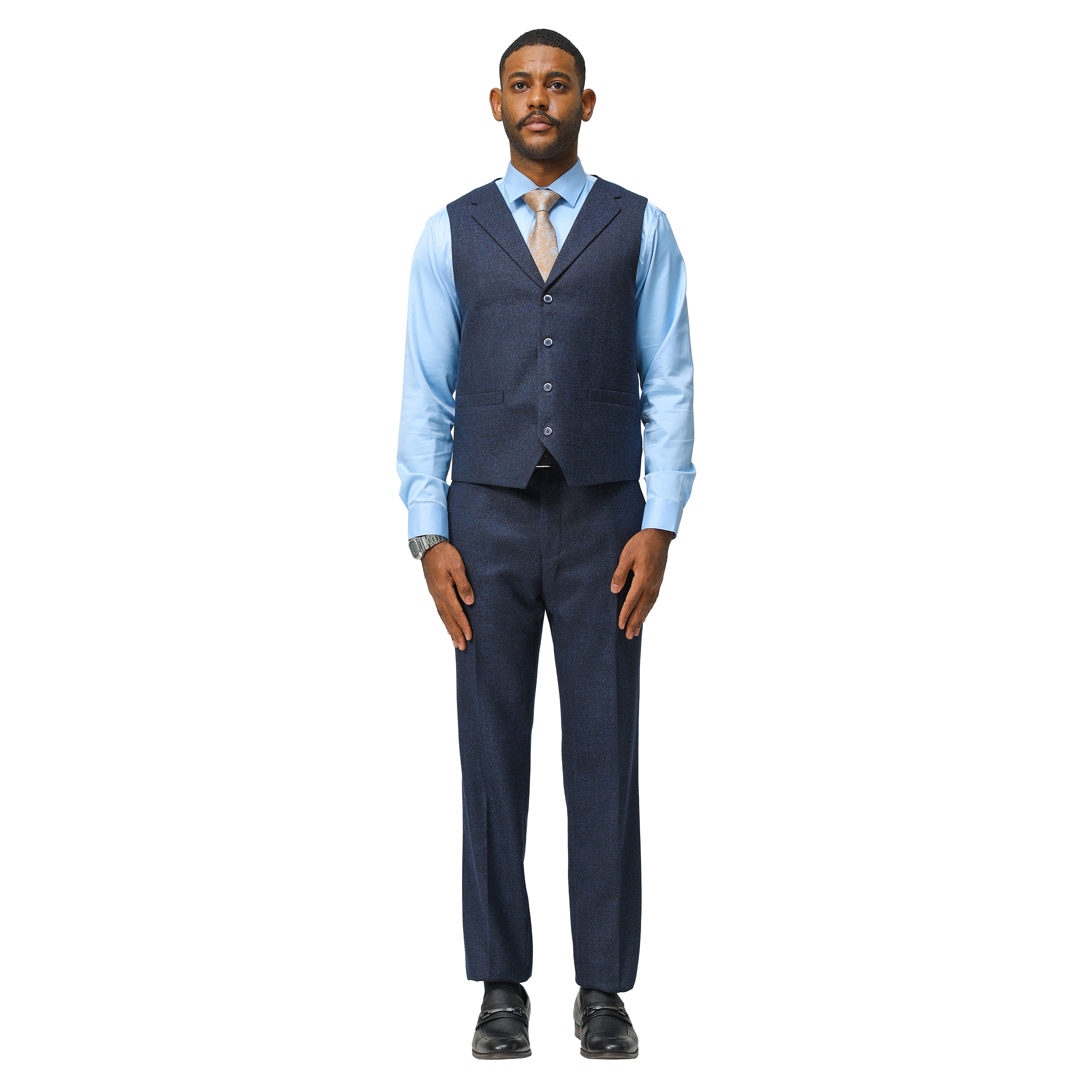 3PC Tweed Suit w/ Expandable Waistband,Navy