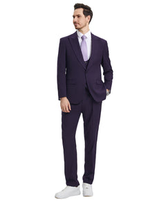 Stacy Adams Men's Hybrid-Fit 3pc Purple Suit Set, Jacket Vest and Pants