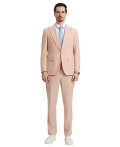 Stacy Adams Men's Hybrid-Fit 3pc Blush Suit Set, Jacket Vest and Pants