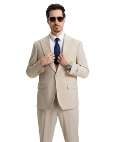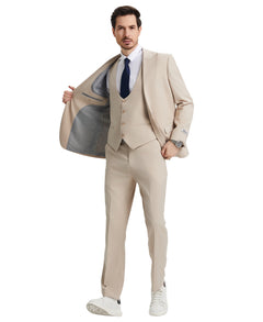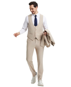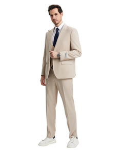Stacy Adams Men's Hybrid-Fit 3pc Light Tan Suit Set, Jacket Vest and Pants