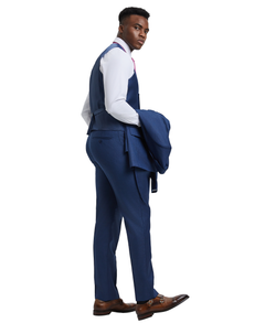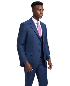 Stacy Adams Hybrid-Fit Sharkskin Suit w/ Double Breasted Vest, Blue Steel
