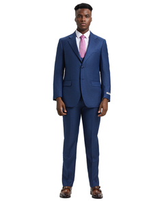 Experience incomparable sophistication with the Stacy Adams Hybrid-Fit Textured Suit in Blue Steel. Showcasing a classic notch lapel, a singular button close, and a 8-button double-breasted vest, this suit radiates refinement. Its hybrid fit and flat-front pants provide exceptional comfort so you can emanate a lavish look with total confidence. Be an embodiment of stylish elegance when you slip into the Stacy Adams Hybrid-Fit Textured Suit.