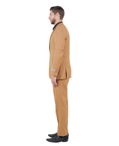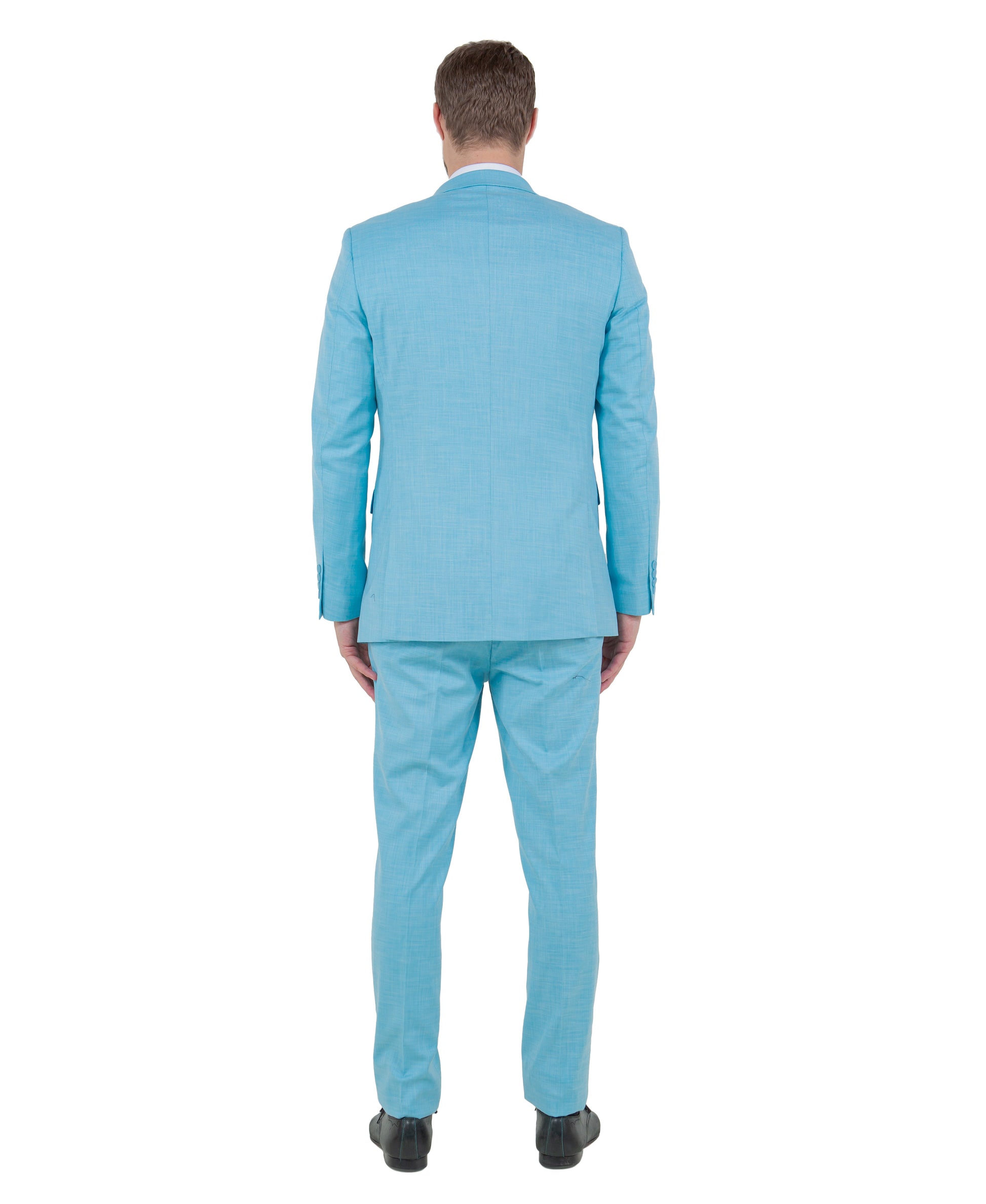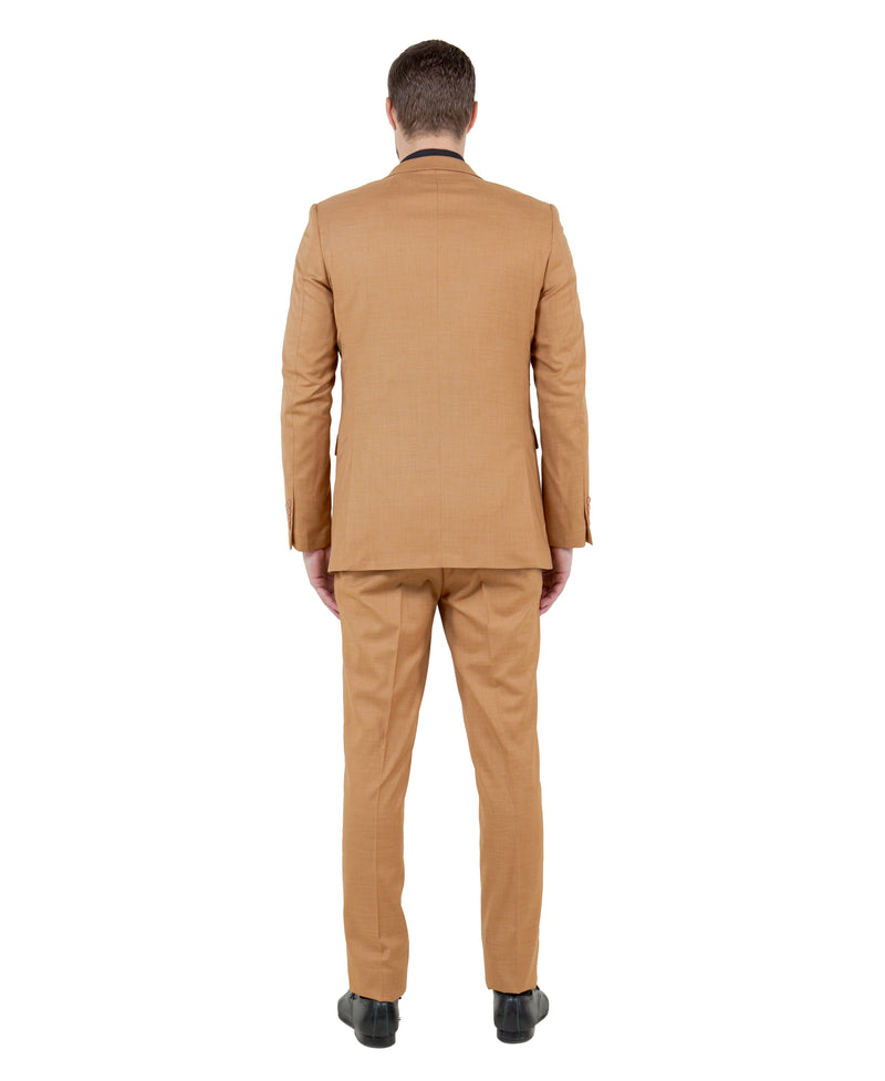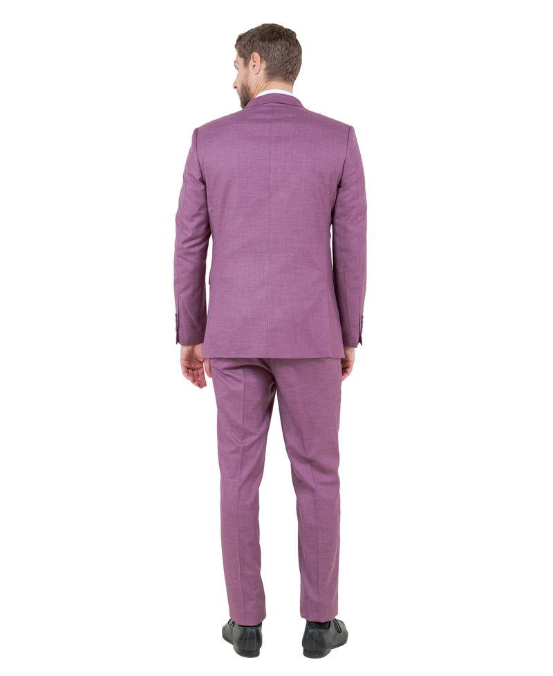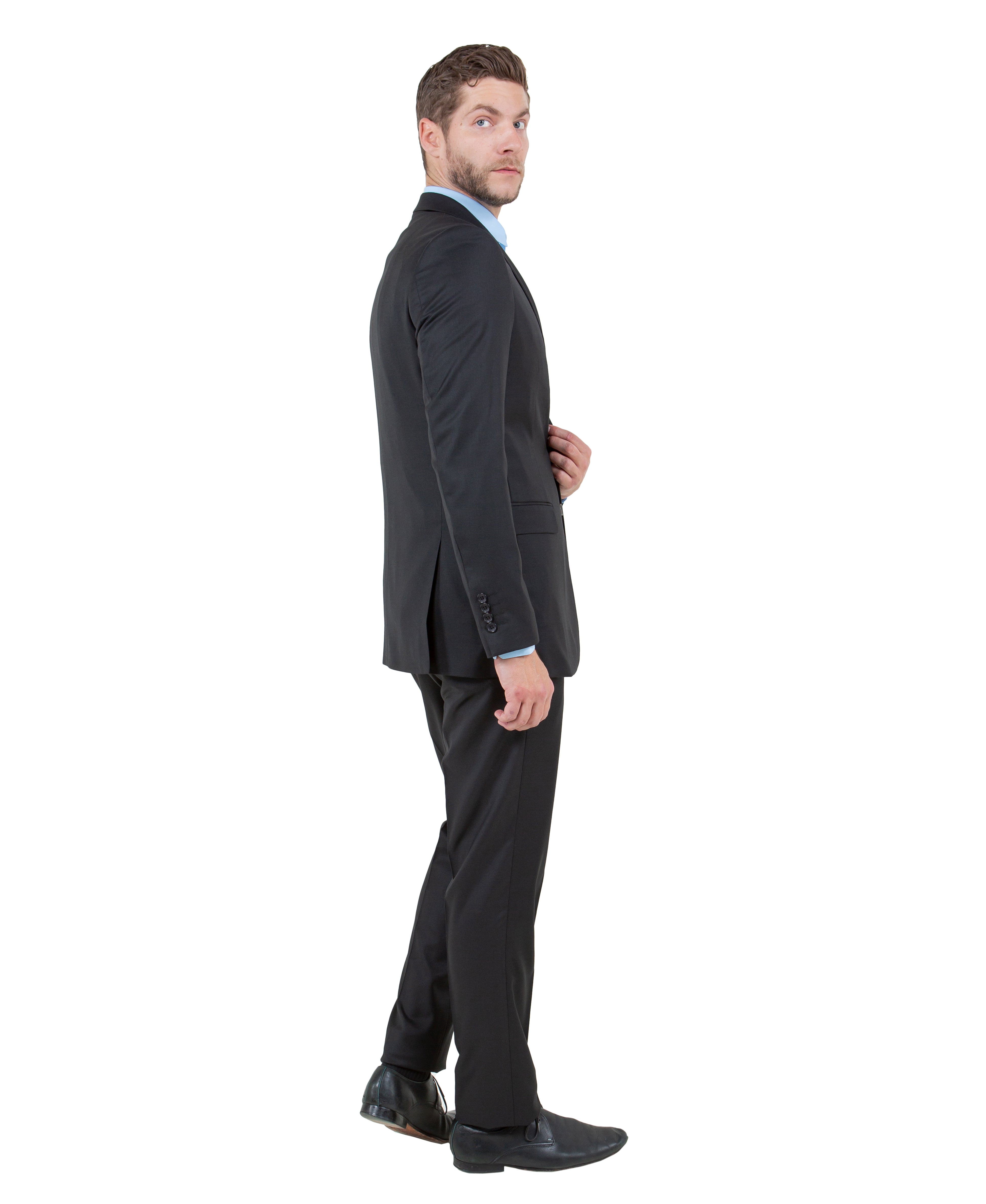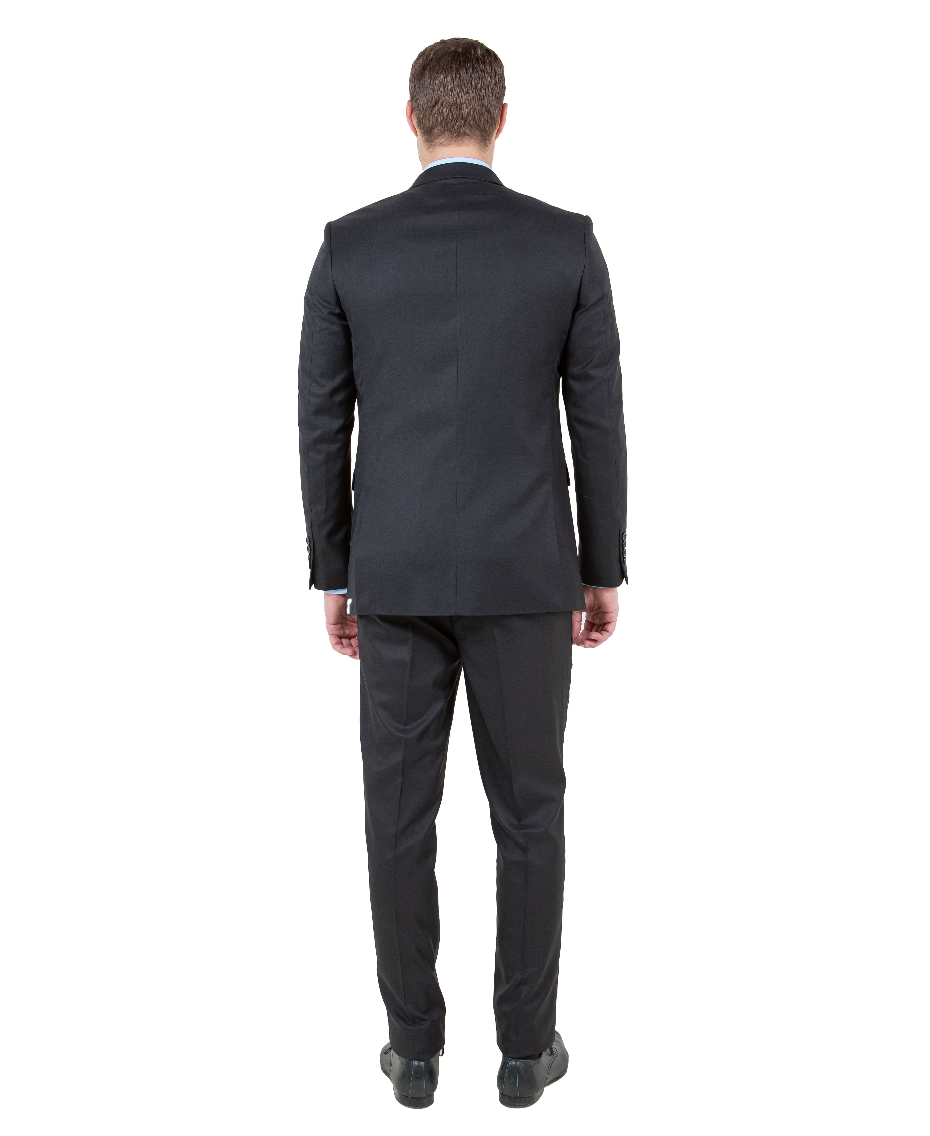 Jacket: Single-breasted two-button closure, classic notch lapel, matching buttons, front flap pockets, left welt chest pocket, custom interior lining, and side vents.