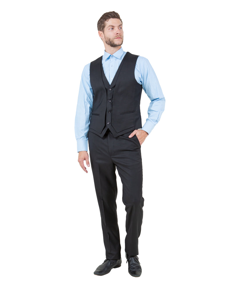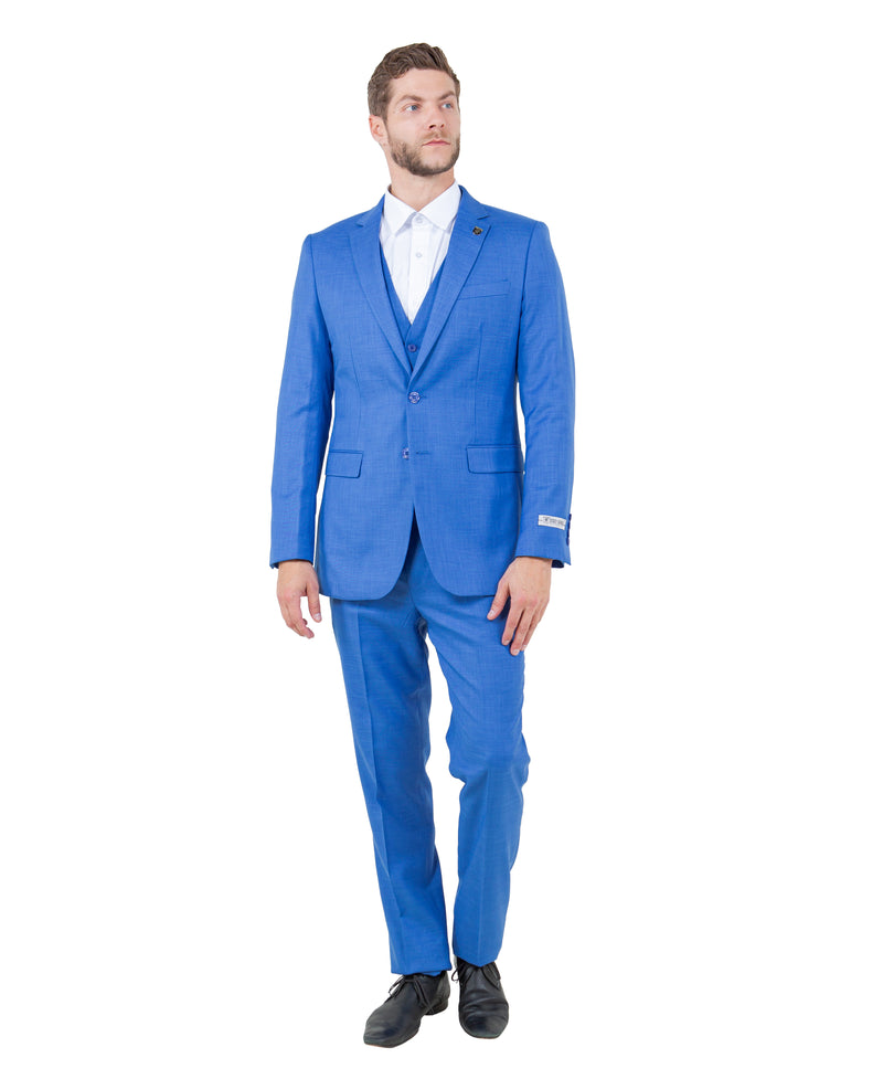 Make a lasting impression with exceptional tailoring details. This Stacy Adams three-piece suit utilizes a sleek sharkskin weave, delivering a subtle, sophisticated sheen that catches the light beautifully without being overly flashy. The true standout is the innovative layered vest, offering a complex, high-end custom look right off the rack. Finished with a versatile classic notch lapel and built with a hidden stretch waistband, this ensemble offers uncompromising style alongside all-day, adaptive comfort.
