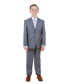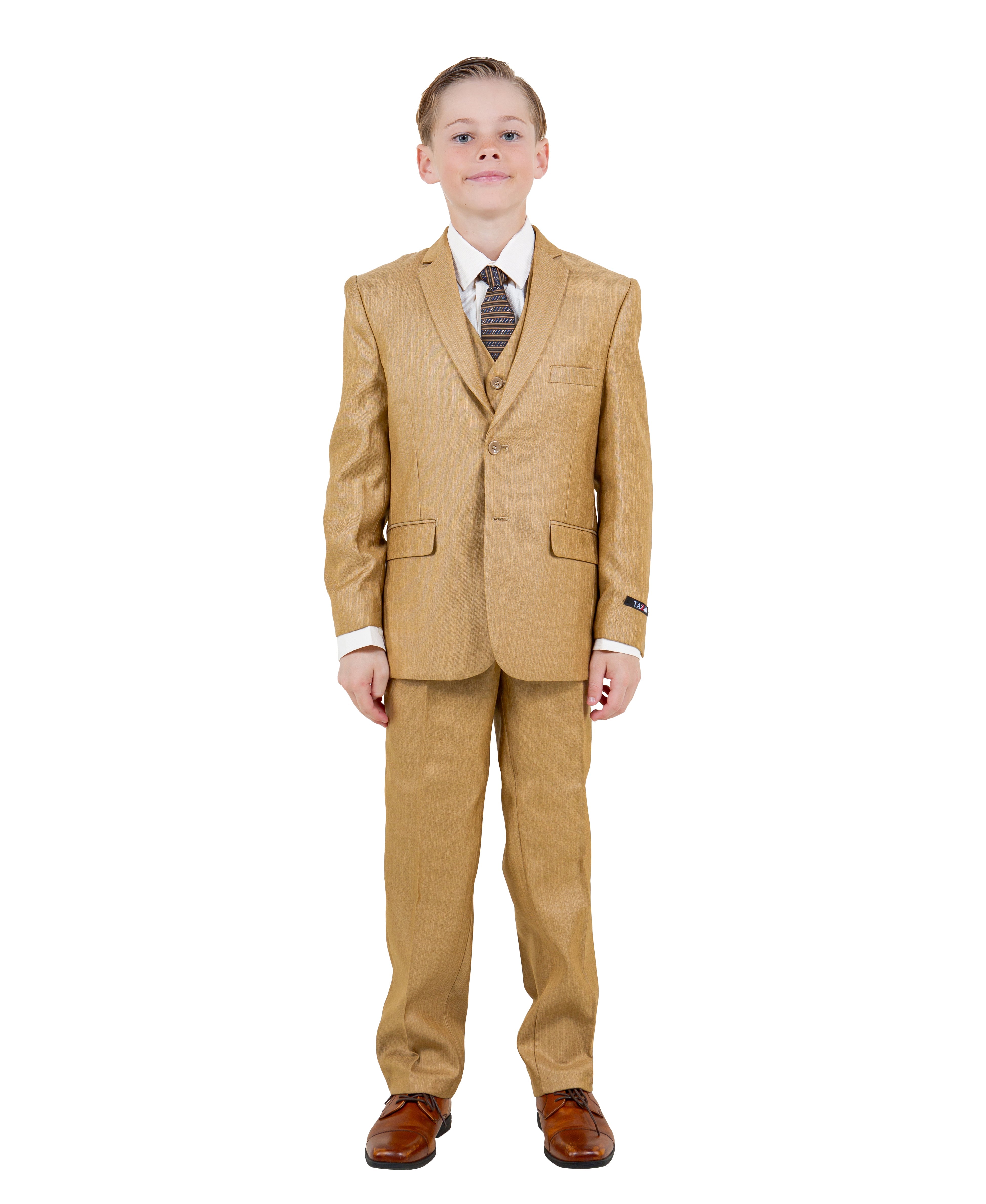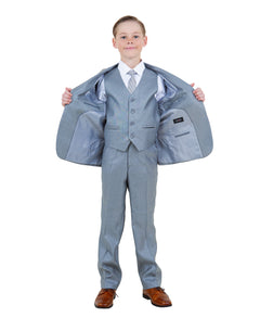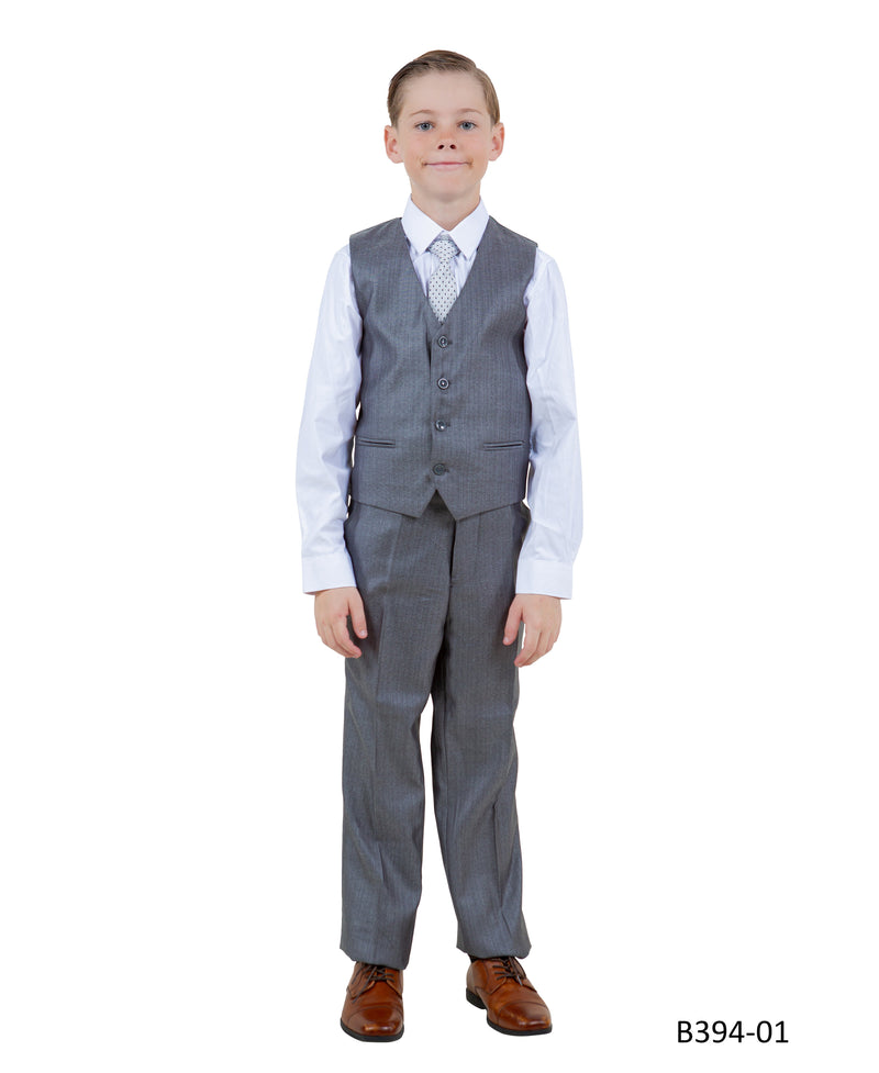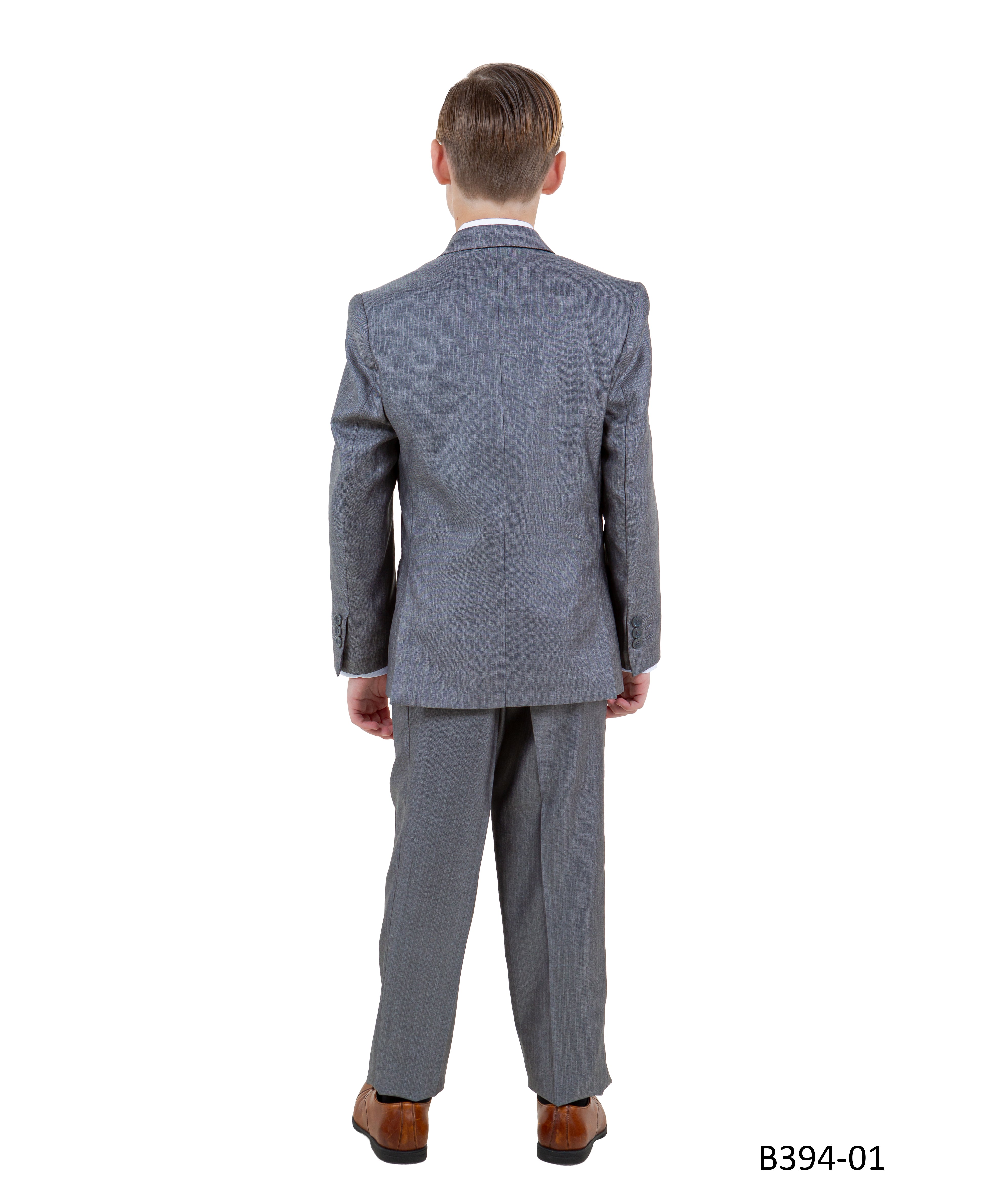 Tazzio Premium Gray Herringbone Boy's Suit | 5-Piece Set for Wedding, Ring Bearer, & Formal Events