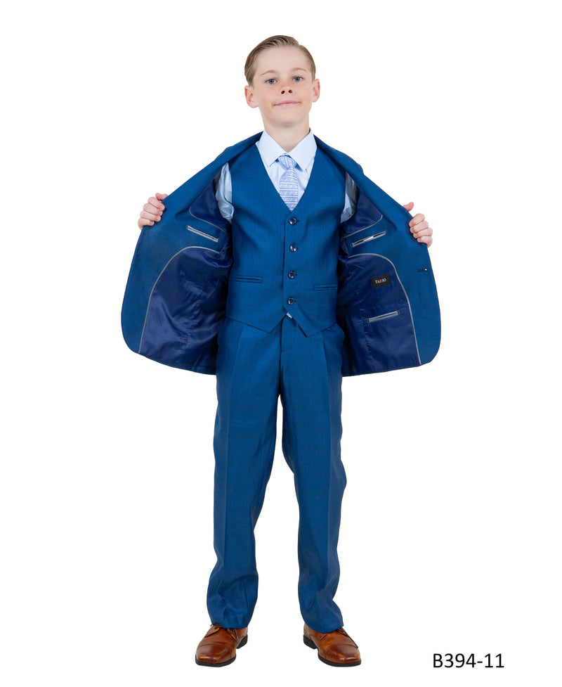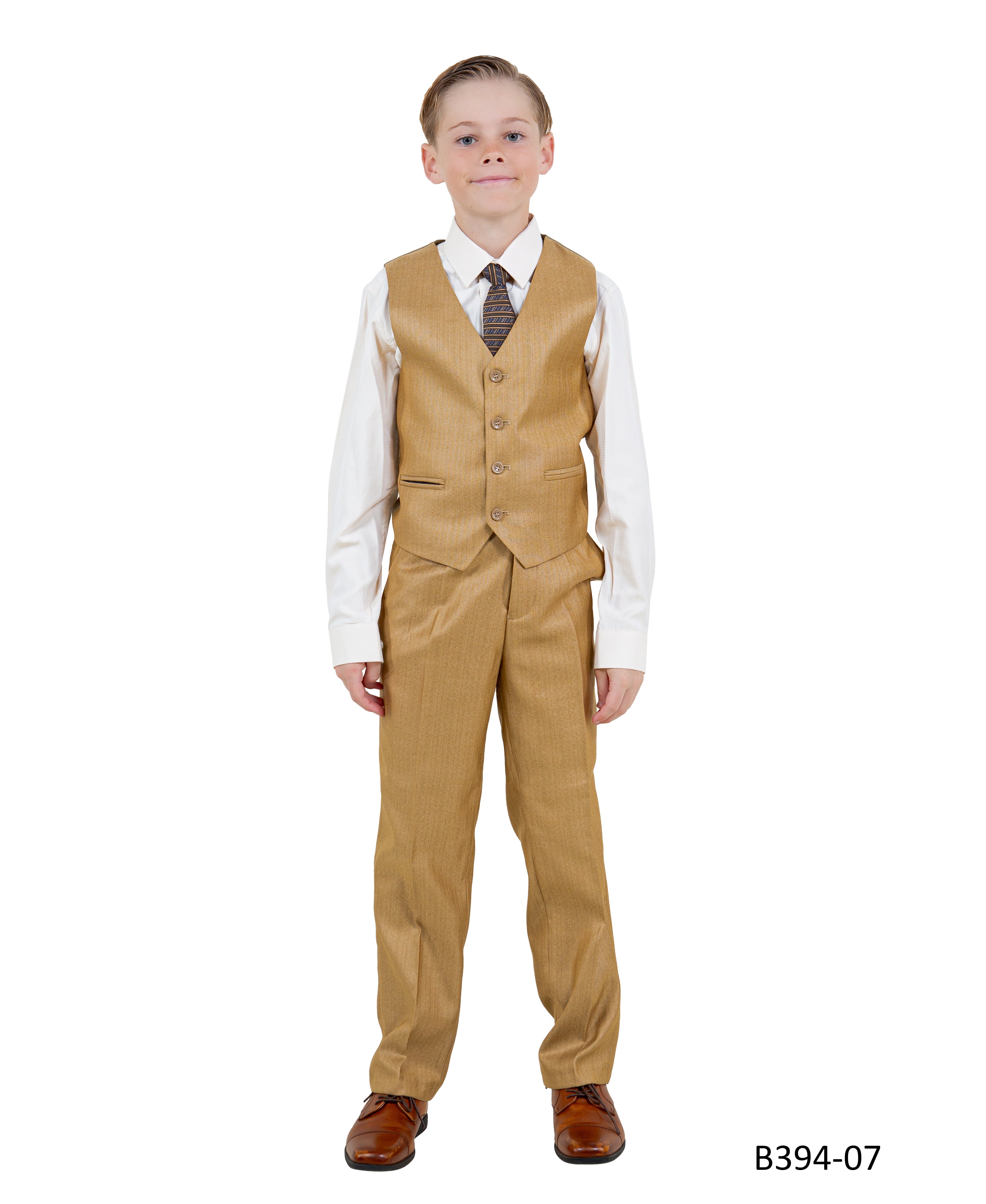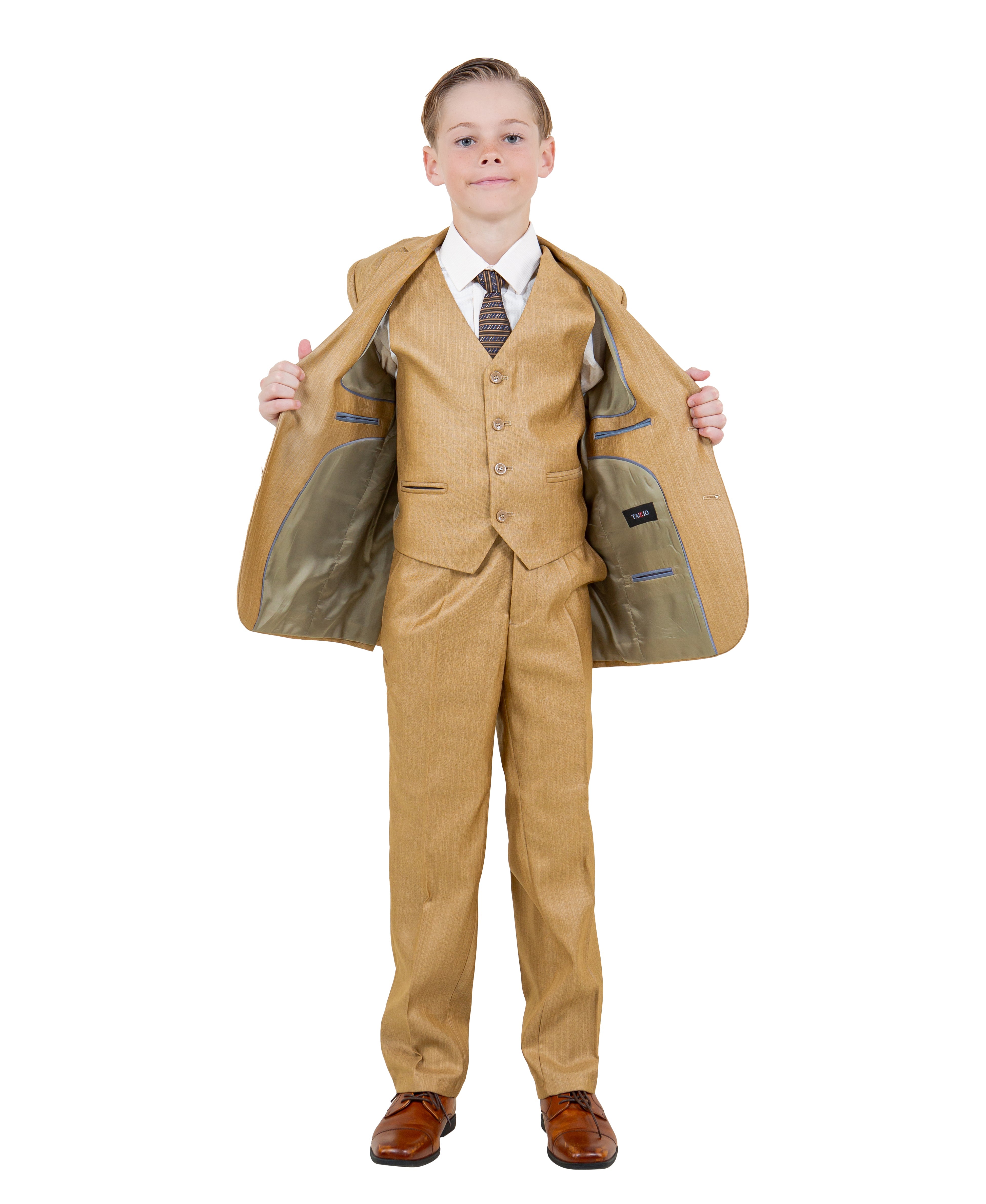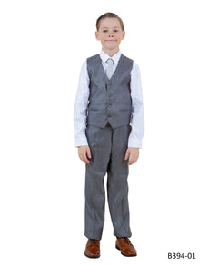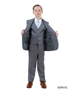 Tazzio Premium Gray Herringbone Boy's Suit | 5-Piece Set for Wedding, Ring Bearer, & Formal Events