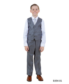 Tazzio Modern Fit Boys Sharkskin Suit 5pc Set, Gray